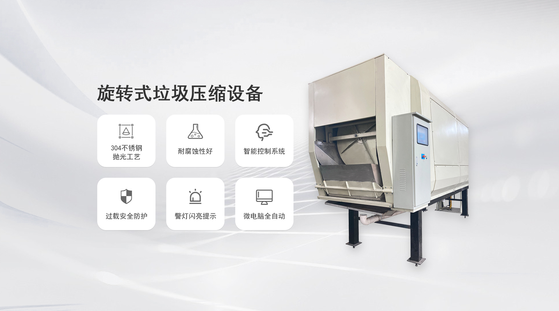工作原理:滾筒螺旋葉片旋轉(zhuǎn)壓縮儲存。滾筒和葉片采用SUS304不銹鋼板制造,耐腐蝕性好。當(dāng)垃圾進(jìn)入滾筒內(nèi),滾筒旋轉(zhuǎn),在螺旋葉片作用下壓縮垃圾...